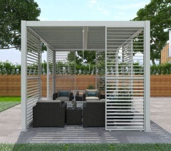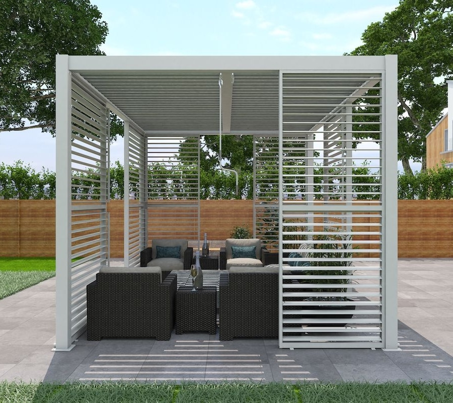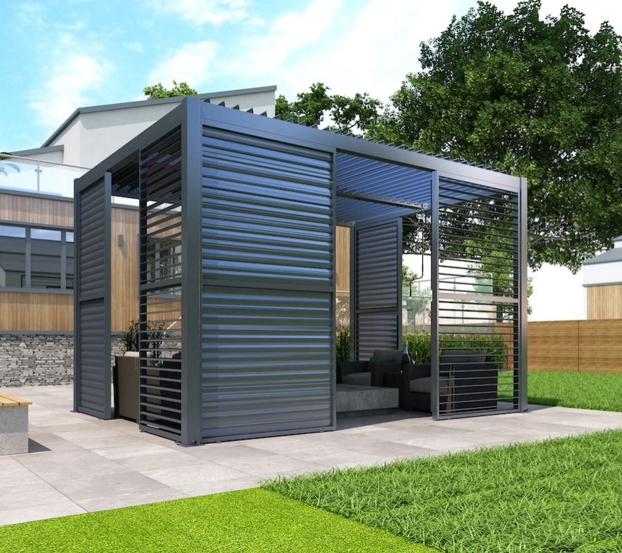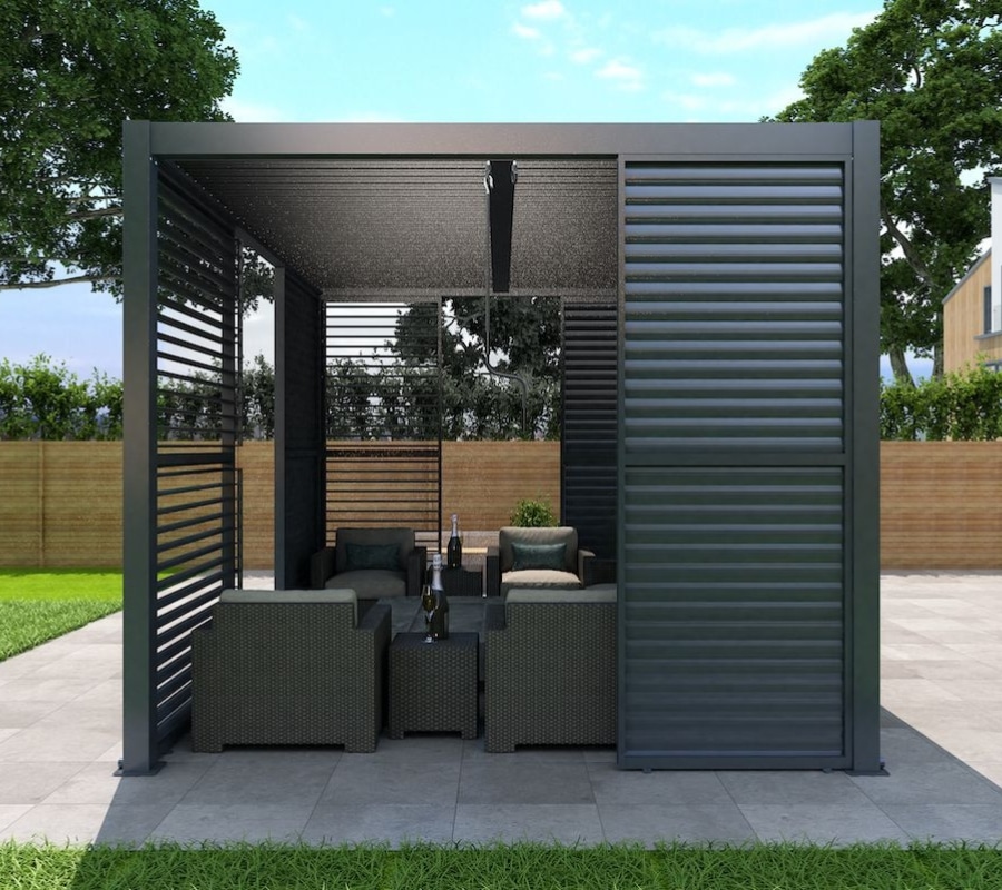 If you wish to increase the functionality of your pergola, we offer a range of accessories such sliding door panels,pull up screens & more. Our motorised pergolas come with a built-in soft LED lighting.
