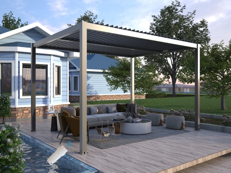 • Fixed louver wall panels: Fixed louver wall panels can be added to the sides of your pergola to further protect against rain and wind.