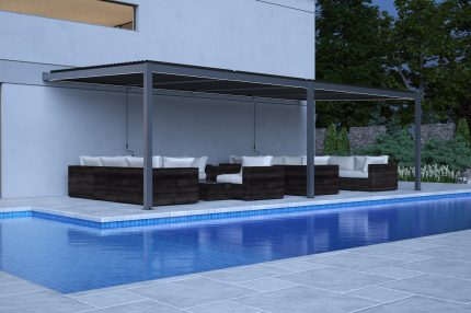 Transform your outdoor space with a Motorised Louvered Pergola. Adjust light, airflow and shade effortlessly with remote control convenience. “All pergolas are only 2.5 meters high.”