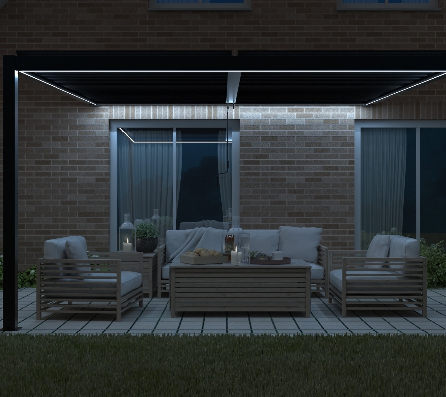 Experience modern outdoor living with a Wall Mounted Motorised Louvered Pergola. Control shade, airflow and light with the push of a button.